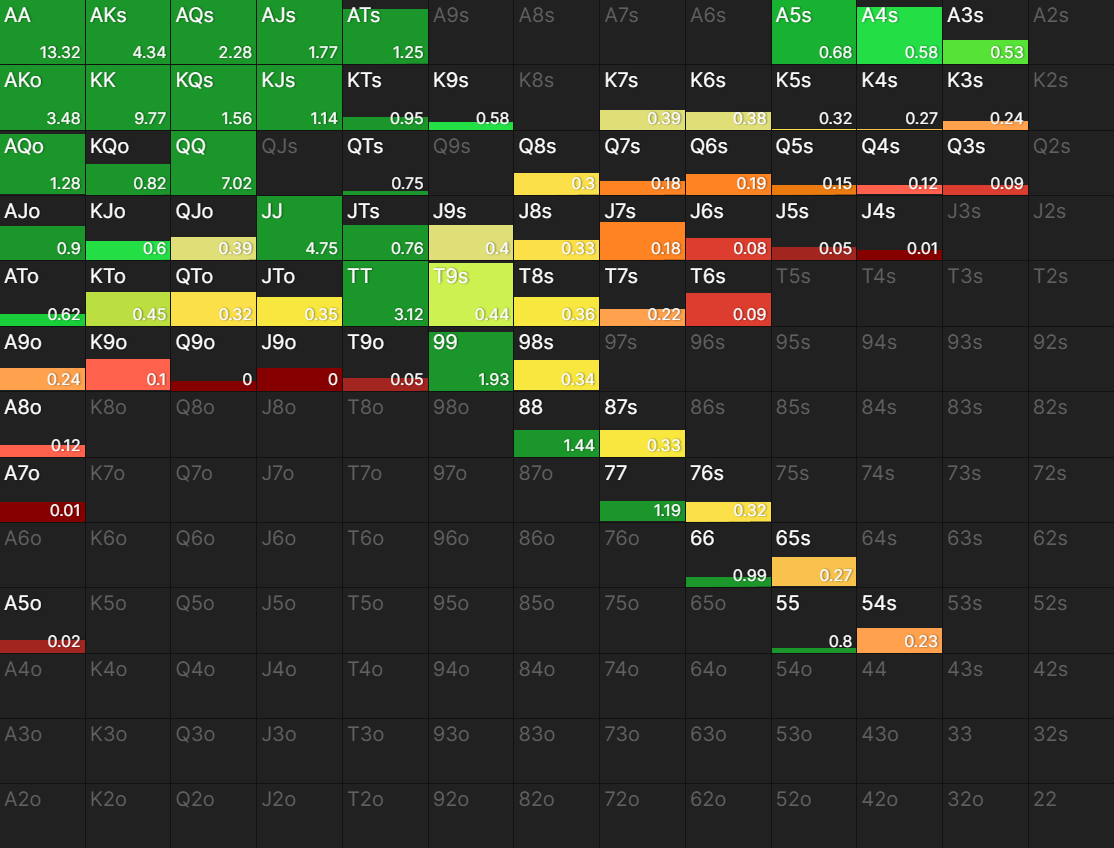 각 플레이어마다 벨류나 블러프의 정의가 주관적이라 3벳 레인지의 EV를 기준으로 분석할겁니다.