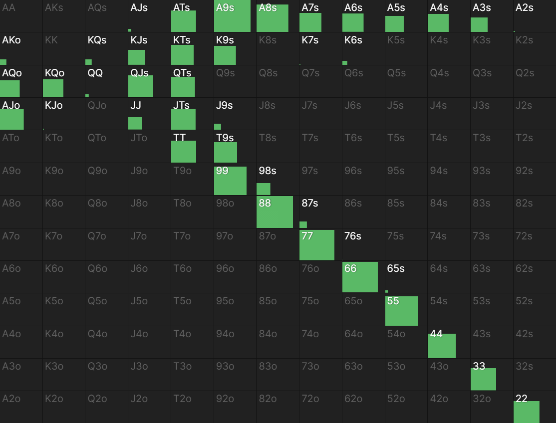 - 캡되지 않다 - 레인지에 베스트핸드가 있다 (BTN 오픈 레인지에 AA가 있다)