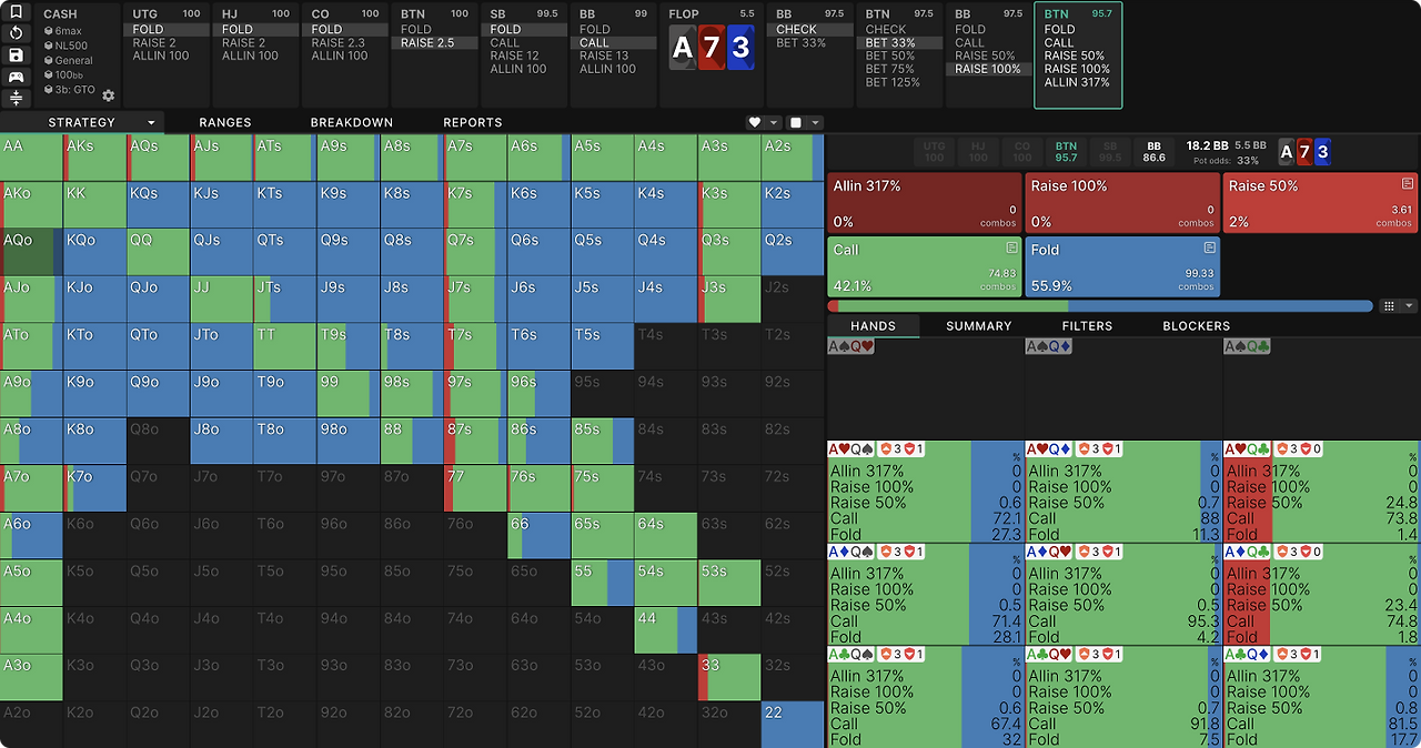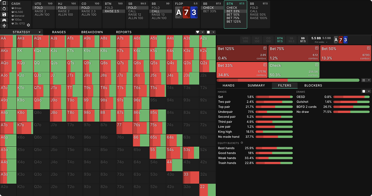 포커 1755가지 다양한 플랍이 나옵니다, 숙련된 플레이어에게 조차 이 숫자는 압도적입니다. GTO위자드의 집계 리포트를 사용하면 이 복잡함을 훨씬 다루기 쉬워집니다. 플랍들을 유형별로 분류하고, 그룹에서 나타나는 공통적인 패턴을 찾아볼 수 있습니다.